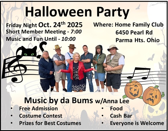 Fri - Oct 24 - Parma Hts., Ohio. The Cleveland Polka Association will have a membership meeting at Home Family Club at 6450 Pearl Rd. Meeting at 7 pm. Halloween Party to follow till 10 pm featuring Da Polka Bums Polka Band with Anna Lee. Costume Contest with prizes. Food. Cash Bar. Public Welcome!!! For more info call 330-461-1772. https://static.wixstatic.com/media/733cd0_36071b2ab09e47238281f4e06424bc7b~mv2.jpg